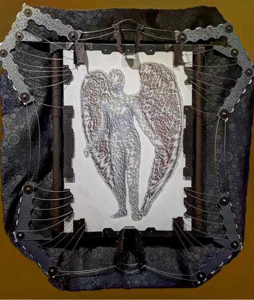 40”x44” Metal, wood, fabric. Giclee on canvas.